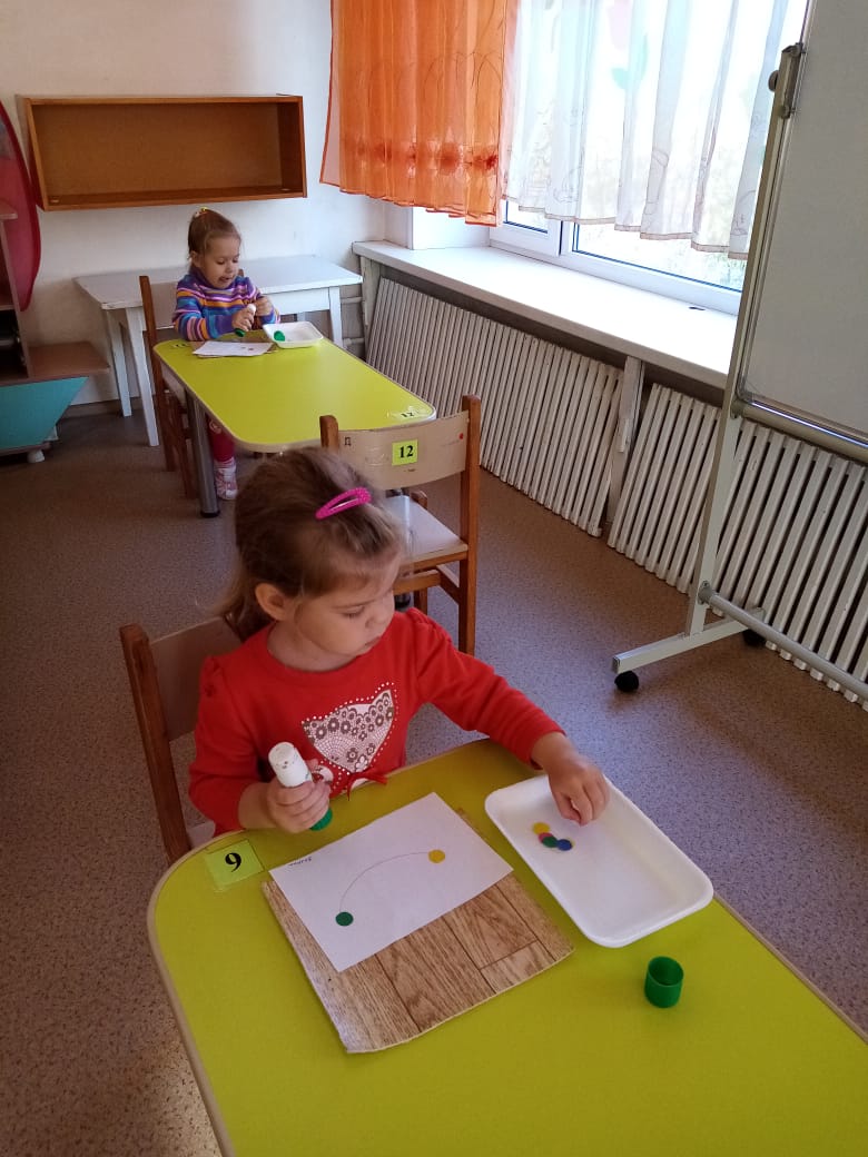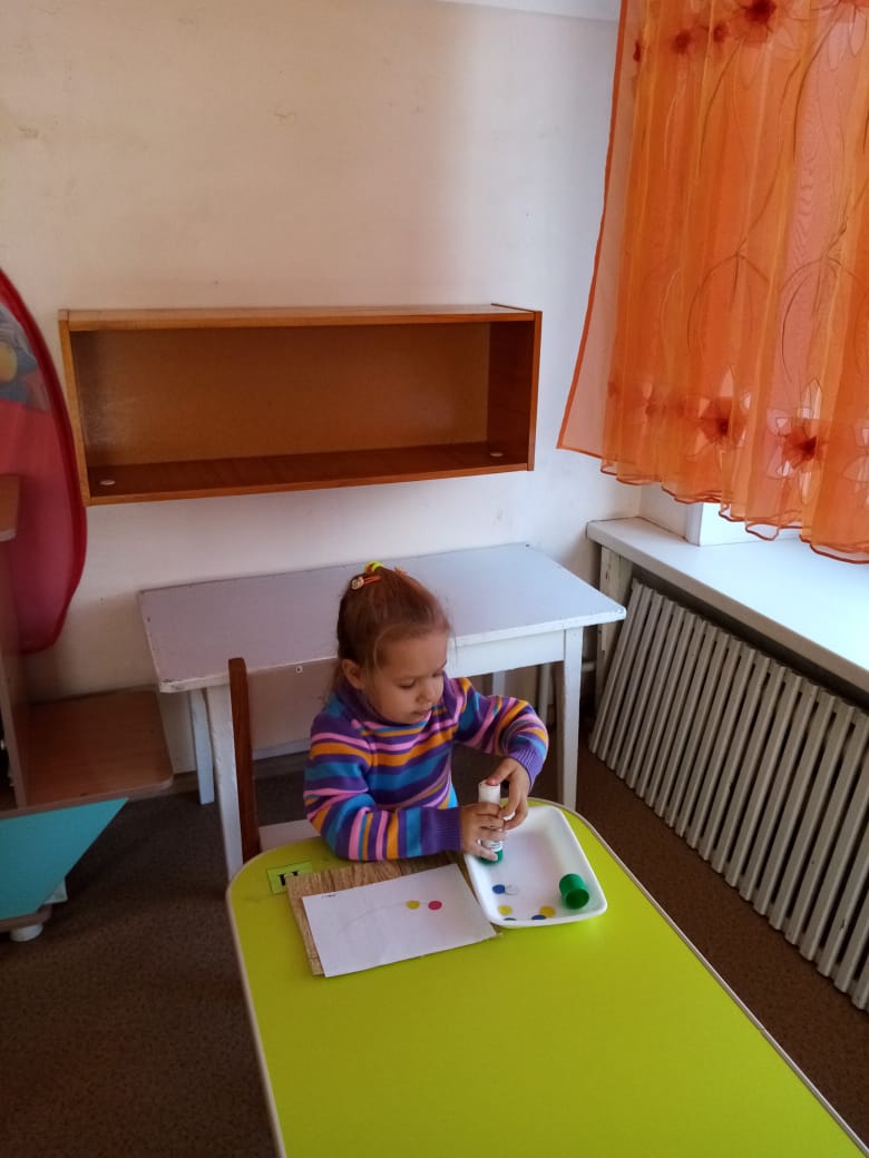 Тема:"Разноцветные бусы для Айгерим". Цель:учить располагать и наклеивать мелкие элементы, череду кружочки по цвету. Развивать умение работать аккуратно. Воспитывать эстетической вкус.